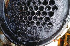 WZ6-12-A2井和WZ6-12-A8井地面生產管匯上加裝過濾器前,通球清管作業過程中從海管清出泥砂約45kg,加裝新型籃式過濾器后,通球清管作業清出泥砂量少于10kg。對三相分離器和沉砂儲集罐開罐檢查過程中,發現三相分離器內只沉積了少量油泥和砂,數量約為往年的1/5,砂儲集罐中收集了約1/3罐(約1.5m3)較潔凈泥砂,未見油污。以前需每10d就對過濾器籃附著的纖維棉進行拆開清洗,而采用新研發籃式過濾器,使用3個月后進行開蓋檢查,未發現任何堵塞現象。水力旋流器入口加裝新型籃式過濾器之前,旋流管的出油孔被油泥堵塞 (圖1),嚴重影響水力旋流器含油污水處理效果,加裝之后,打開油腔端蓋后出油孔較干凈(圖2),且拆洗周期由1個月改為2個月。